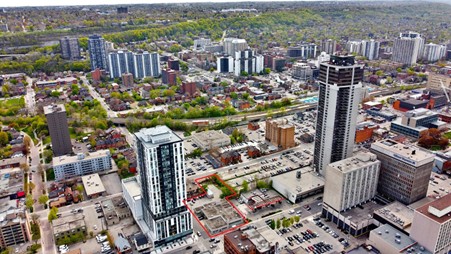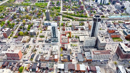 We are excited to unveil 150 Main St East, right in the heart of downtown Hamilton. This unique assembly of five properties exemplifies our commitment to bringing together a blend of commercial and residential units, complementing the urban landscape of downtown Hamilton. The project benefits from a strategic location near the proposed Hamilton Light Rail Transit station on Main Street, offering excellent transit connectivity. Access to major highways such as Highway 403, QEW, the Lincoln M. Alexander, and Red Hill Valley Parkways makes travel within and outside the city convenient. Hamilton International Airport is just a short 20-minute drive away, connecting residents to the world. Situated within walking distance of the waterfront and the new Entertainment district, the site will offer breathtaking views of Hamilton Harbour once completed, Lake Ontario, and the downtown skyline. Additionally, residents can easily access the iconic Bruce Trail for serene hiking trails and scenic waterfalls, providing a balanced urban and natural lifestyle.